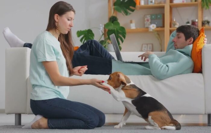 To get your dog to focus, begin with a calm and distraction-free environment in your house. Start with short training sessions and gradually increase the duration as your dog’s attention span improves. Use high-value treats to motivate your dog and keep them engaged. Make eye contact with your dog before giving commands, and use a clear, confident tone of voice. If your dog is easily distracted, try using a designated training area and removing potential distractions. When your dog loses focus, redirect their attention back to you with a treat or toy. Teaching your dog the «watch me» command can also be beneficial; reward your dog when your dog is looking at your eyes. Remember, patience and consistency are key to help your dog learn. Celebrate small successes and keep training positive to train your dog to associate learning with fun.